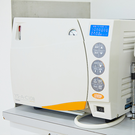 使用した器具は高温の蒸気で滅菌する機器(オートクレーブ)を使って滅菌しております。 またタービン(歯を削る機器)も使用ごとにオイル滅菌を行い、衛生面に気を付けています。