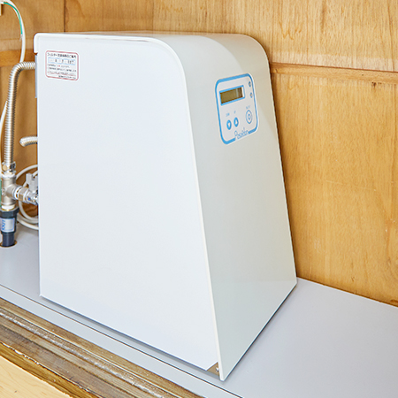 当院では、治療に使用する水にも配慮しております。 水配管内の細菌などの繁殖を抑える中性電解水生成装置(ポセイドン)を設置しております。 飲用することもでき、体に優しいお水となっております。